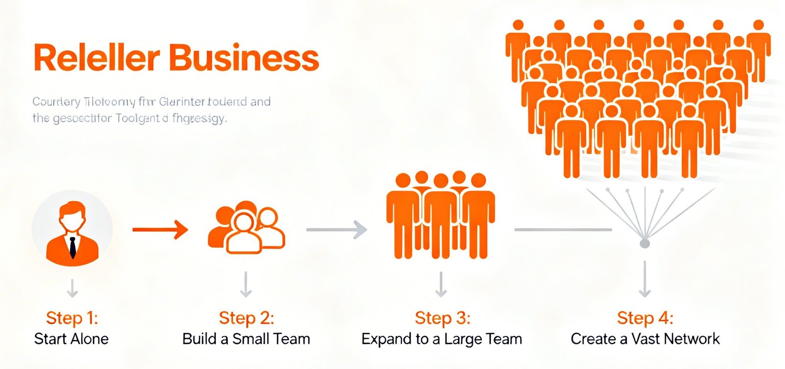 Mulai membangun 3 hingga 5 reseller pertama dengan bimbingan sederhana, sistem yang jelas, serta dukungan komunitas, sehingga tim kecil terbentuk, saling menguatkan, dan mulai menciptakan pertumbuhan jaringan yang stabil.